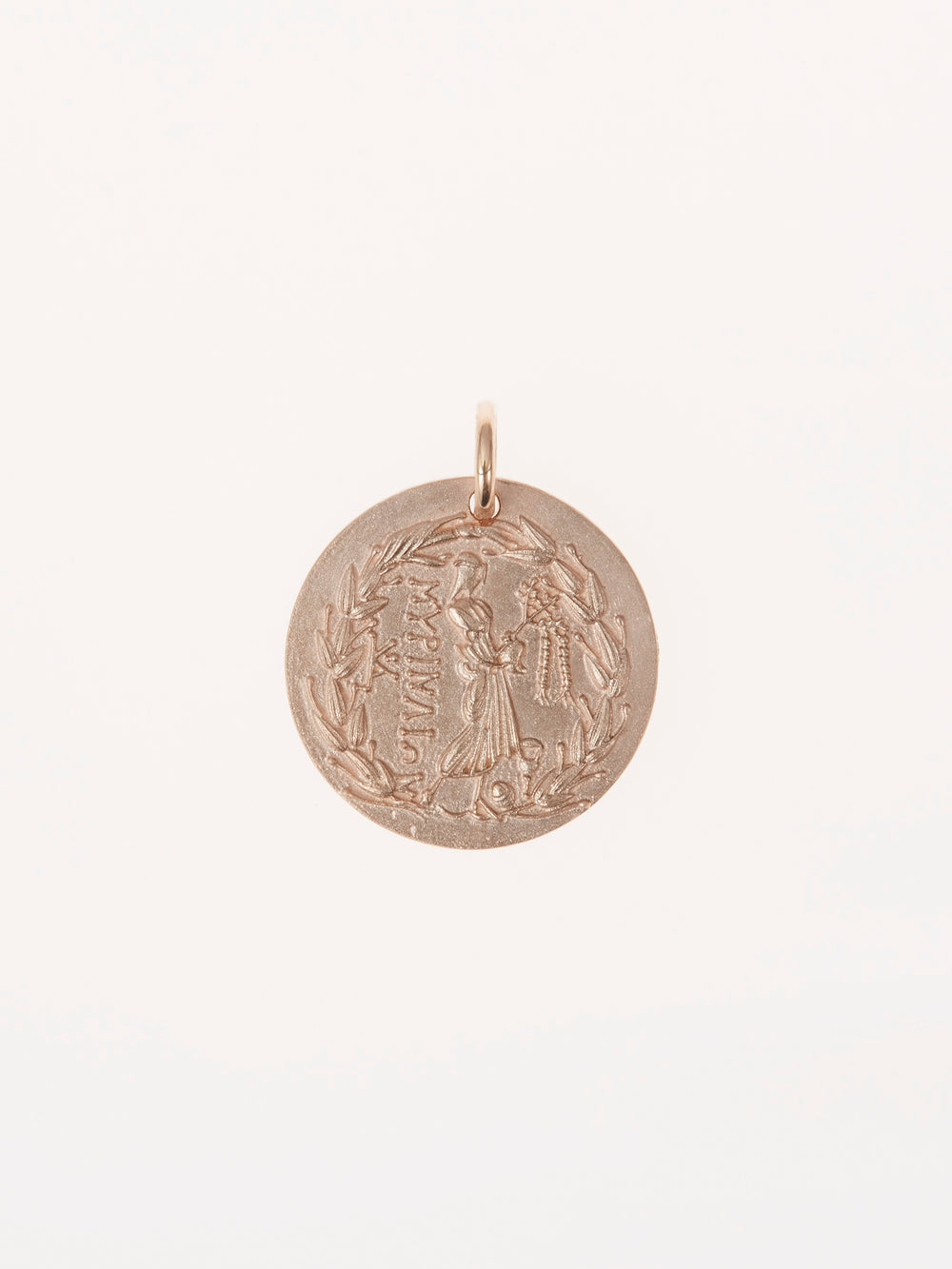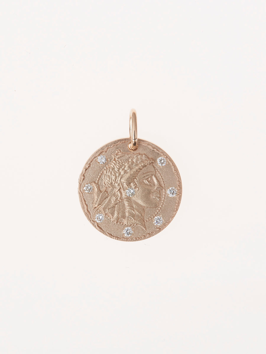 Un charm en pièce de 10 000 $ inspiré d'Apollon, le dieu du soleil. Rayonnant au centre, des diamants synthétiques symbolisent l'éclat du soleil. Dieu de la lumière, des arts et des muses, ce charm est idéal pour ceux qui cherchent à cultiver leurs talents et à se projeter dans un avenir radieux. (La pièce est vendue seule. Vous pouvez choisir parmi six types de chaînes, vendues séparément.)