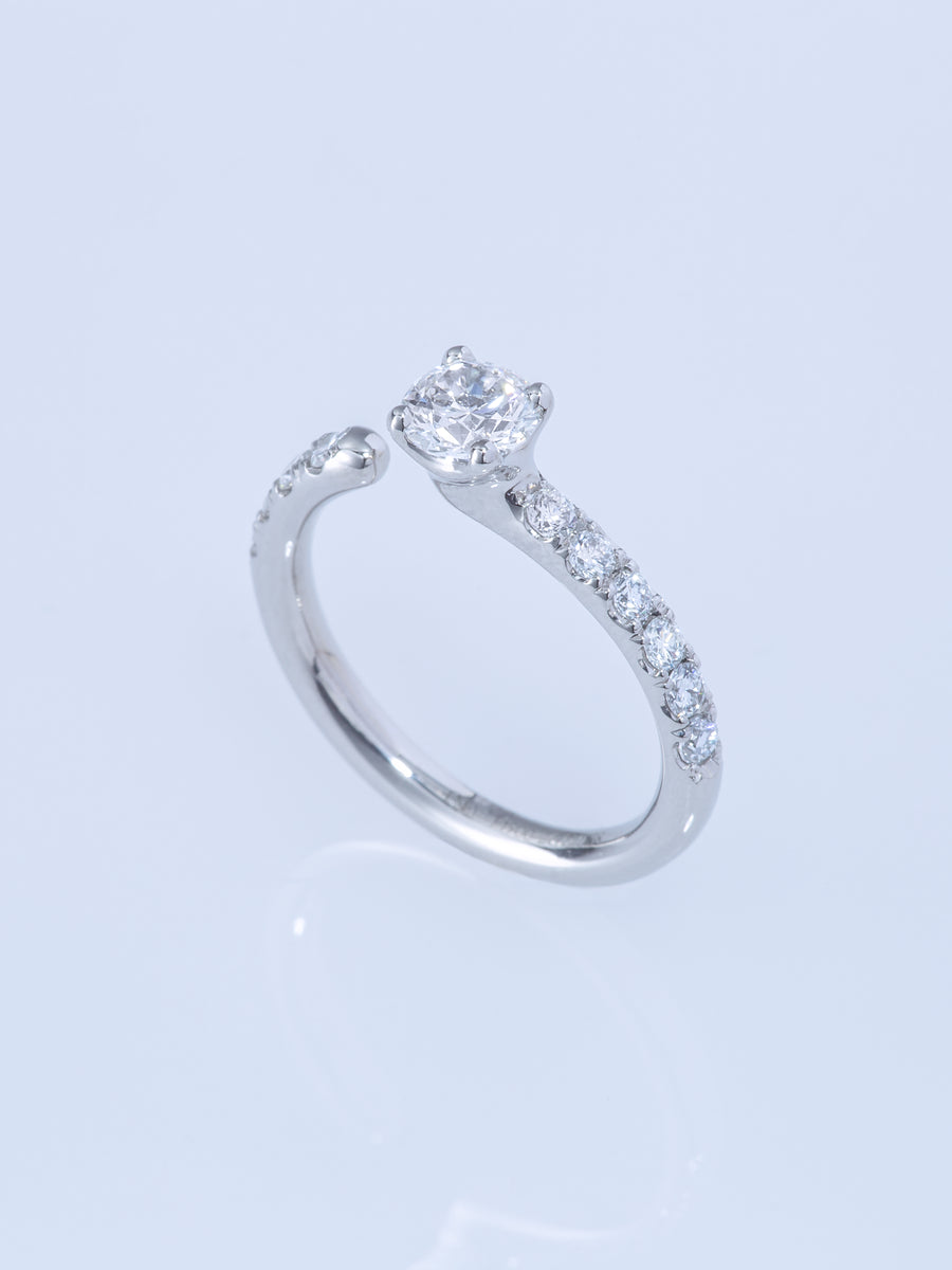 Équilibrant l'élégance audacieuse avec la fluidité moderne, cette bague est une célébration luxueuse de la forme, de la lumière et de l'individualité, idéale à la fois pour le style de mariée et l'expression personnelle.