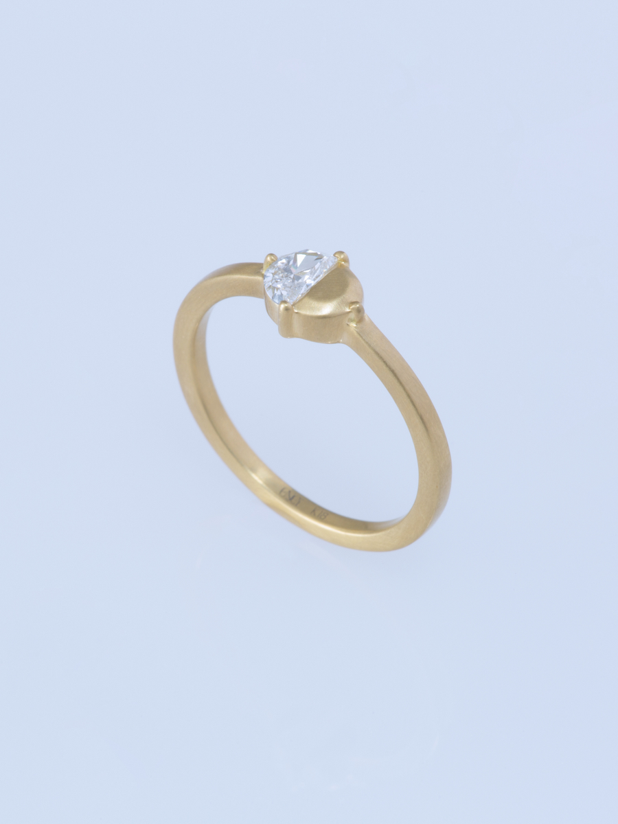 月へのモダンな頌歌であるこのリングは、0.2カラットのハーフムーンカットのラボグロウンダイヤモンド2石が輝く円を描き、完全性とバランスを象徴しています。彫刻的なエレガンスと静かな輝きが融合した、詩的でありながら現代的なデザインは、ミニマリズムの中に意味を求める方に最適です。