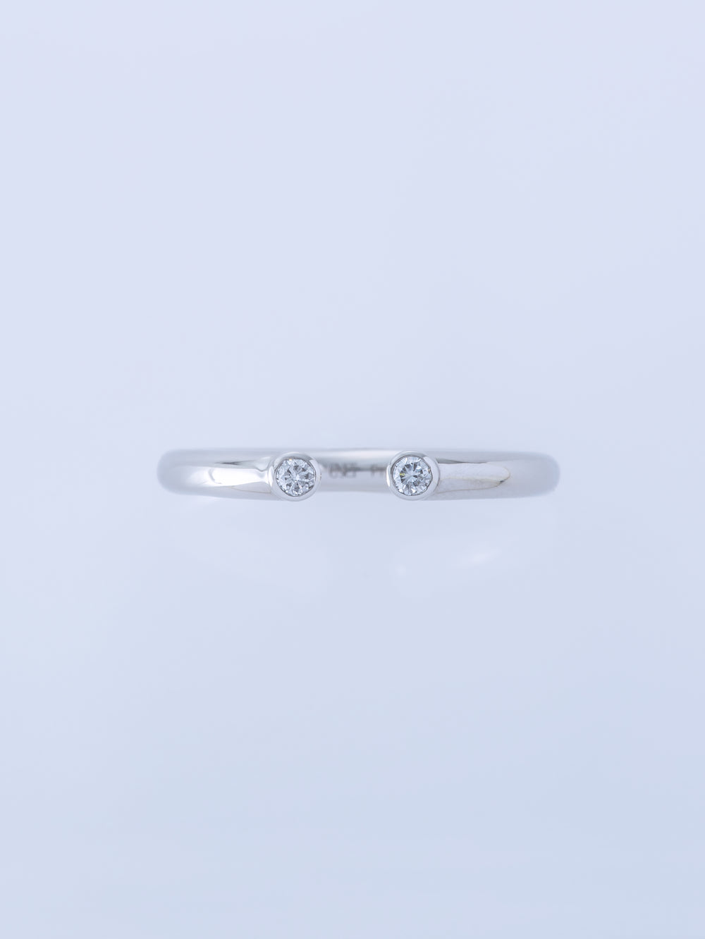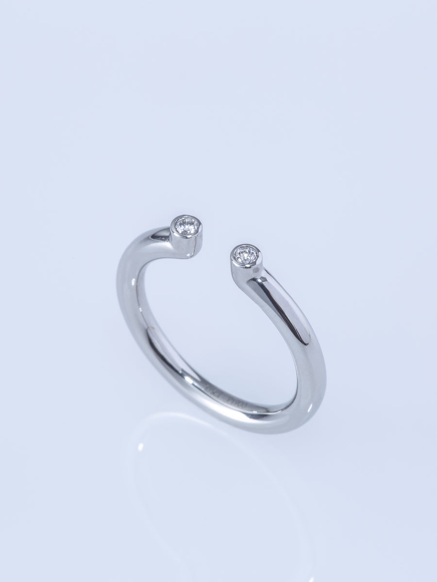 TWOコレクションの洗練されたステートメントリング。オープンエンドに繊細にセッティングされた2つのラボグロウンダイヤモンドが、リズムと動きを演出します。オープンエンドのデザインは、軽やかでモダンなシルエットを生み出し、エフォートレスでありながらダイナミックな印象を与えます。